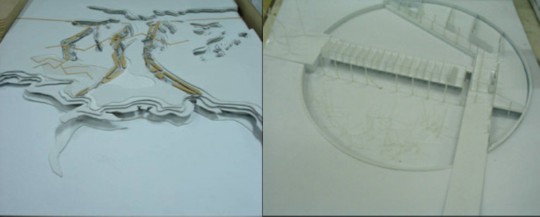 - REFERENTE / posibilidad de la infrestructura < puente > de convertirse en un elemento simbolo del paisaje y del fenómeno productivo / Puerta al valle / escenario festivo de la producción.