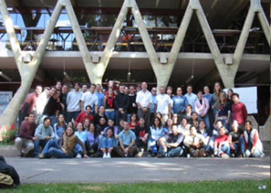 Docentes y alumnos de Buenos Aires y Mendoza frente a la Facultad de Arquitectura de la Universidad de Mendoza, magnífico edificio proyectado por Enrico Tedeschi.