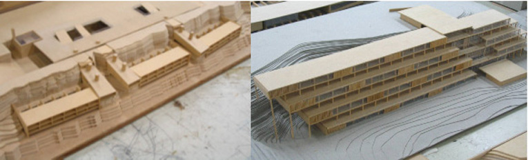 La condición sísmica del lugar le agrega un compromiso con el espacio urbano que en su reconstrucción definió una plaza central con capacidad para todos los habitantes y cuatro accesorias con equipamientos afines a la situación de catástrofe. El hecho construido resulta inescindible de esa integralidad en el pensamiento.